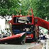 Via het straatfestival op Waterstreet liepen we richting Pier 17. Om een nadere blik te werpen op de Brooklyn Bridge en om een plek te spotten voor het grote vuurwerk. Zogezegd zogedaan en voor zes uur zaten we op een schitterende plek aan de zuidzijde van de pier. Het vuurwerk zou om half tien beginnen en dat betekende wachten. Met veel mensen. In enige warmte. En veel Amerikaanse trots. En was het het waard? Oordeel daar zelf over aan de hand van de vuurwerk video (1.412KB, WMV, corny music live recorded).